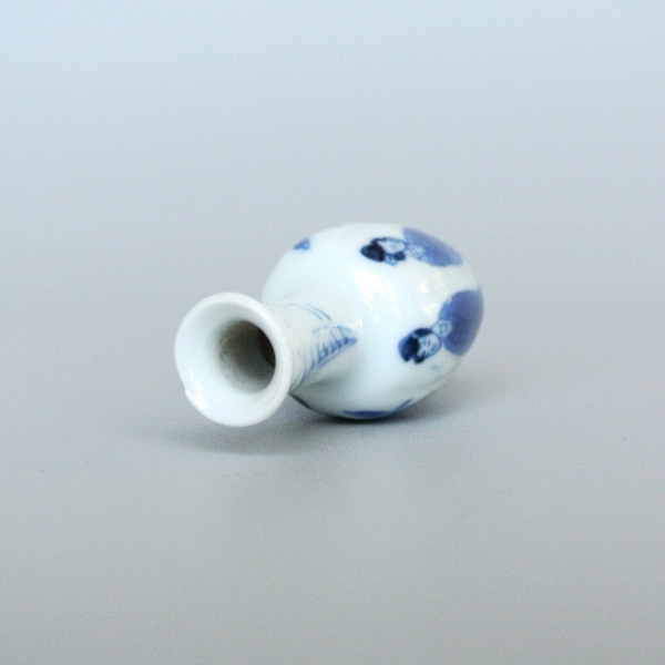 A so-called blue and white "dollhouse vase" with long Lijzen decoration on the belly. This type of miniature porcelain was actually collected in the 18th century by wealthy ladies as 'luxury goods' for their stately dollhouses to imitate a realistic and rich miniature interior, for example, people also collected miniature silver, which was often combined with the small porcelain.